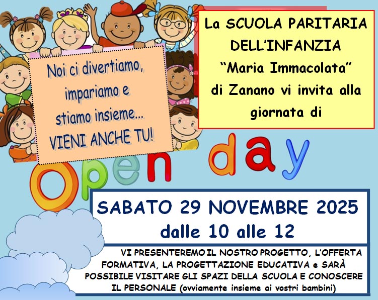 La Scuola dell’infanzia Paritaria M. Immacolata, è espressione della Comunità Ecclesiale di Zanano, è gestita dall’Associazione “Maria Immacolata” della Parrocchia Regina della Pace , radica la propria proposta educativa nella concezione cristiana della vita.